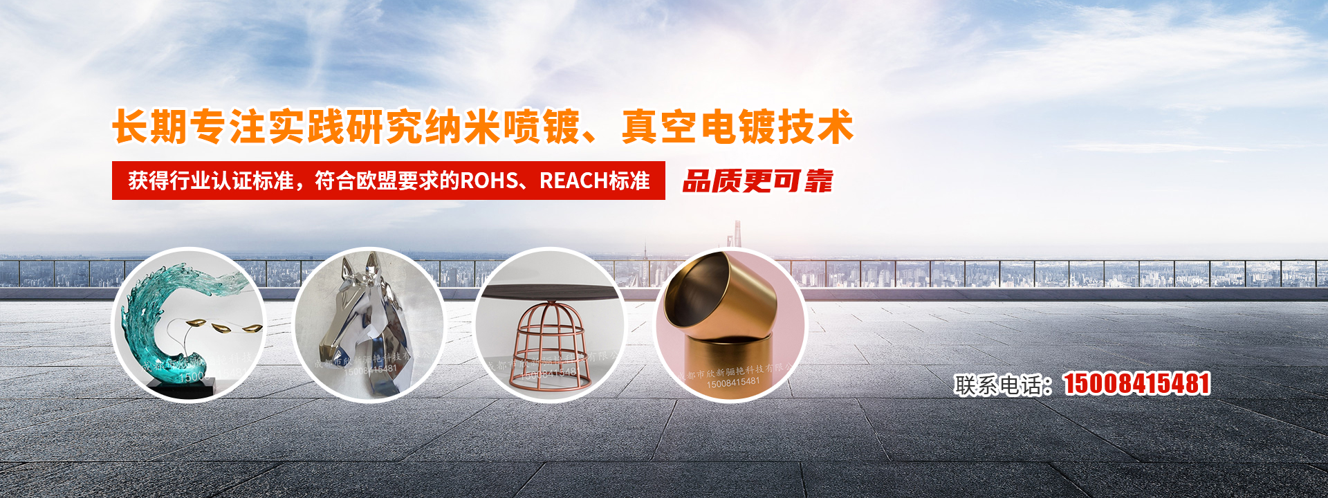 成都市欣新驪艷科技有限公司是一家有豐富的企業管理經驗和具有豐富經驗的電鍍技術專業人員組成的大型納米噴鍍、真空電鍍生產廠家,公司一直專注實踐硏究納米噴鍍、真空電鍍技術,經過不斷改良及改進,納米噴鍍技術在行業得到高度認可,并獲得行業認證標準,符合歐盟要求的RoHS、REACH標準,令客戶不...